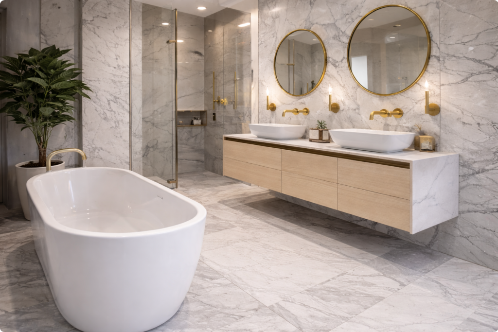 Utilizamos materiais selecionados e técnicas modernas para entregar acabamentos impecáveis, com foco em estética, durabilidade e sofisticação em cada detalhe.